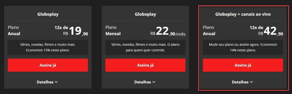 • Terceiro plano: Combo Globoplay + canais ao vivo + Disney+ com plano mensal de R$ 43,90*;