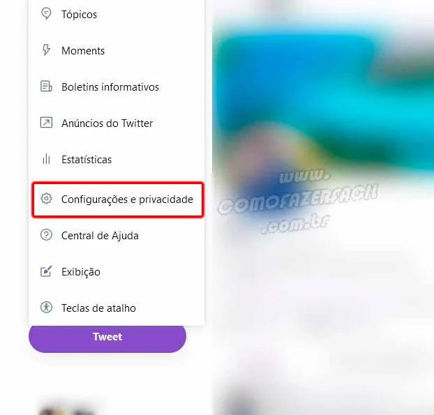 Passo 1: acesse o twitter.com e clique no menu hambúrguer da lateral superior esquerda se tiver no smartphone ou em “Mais” se estiver no computador.