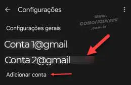 Passo 3: em “Configurações gerais” escolha a conta que deseja ativar o Google Chat. Basta clicar sobre o email já cadastrado no seu celular ou adicione uma conta;