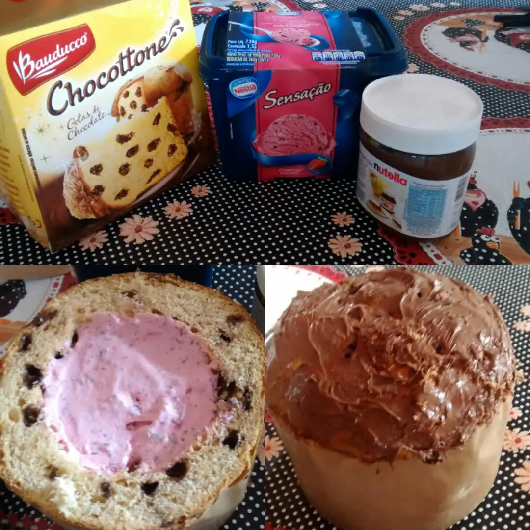 A receita é bem simples como você já pode imaginar. Só será preciso um pouco de cuidado na hora de fazer a cavidade onde será colocado o sorvete. É importante também comprar um panetone mais macio (ou chocotone), pois aqueles muito seco, esfarelam tudo.