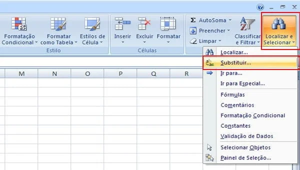 Depois clique no menu superior direito, em “Localizar e Selecionar”